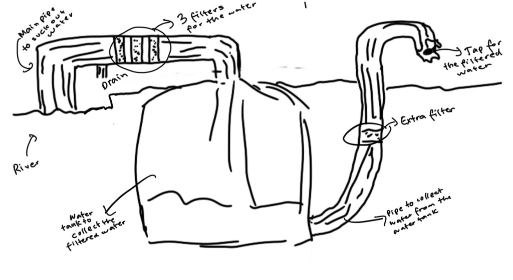 Fayek: It’s a great idea. This has been used before but making it larger and using for bigger projects such as the rivers is great and can really help reduce water pollution in Indonesia. I like how you guys used annotations in your drawing to make it look so detailed. Very good idea!
