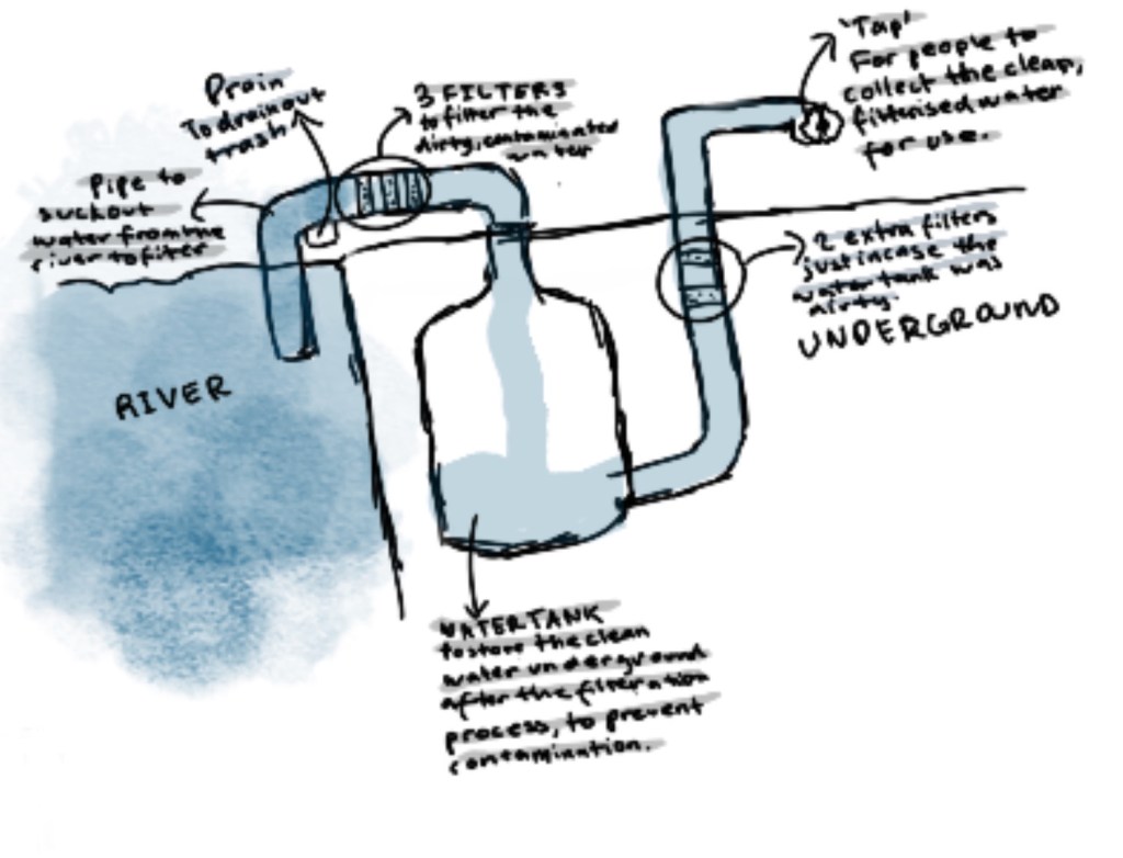 The picture above is our final product. We have a more detailed picture of our product along with another picture which has some annotations on it. More explanation is in our video below: